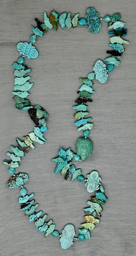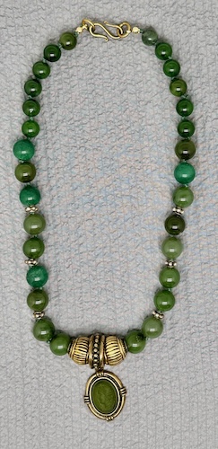 Judith Ubick has traveled the world to collect the rare and unique antiques that she has incorporated into this year's collection. Her one-of-a-kind necklaces, fashioned from a plethora of amazing finds, discovered on her travels include: antique Chinese artifacts of silver and jade, Afghan, Nepalese and Tibetan beads of Turquoise, Lapis, Agate and Serpentine and a unique assortment of both precious and semi-precious beads, some faceted, some hand carved, some set in sterling bezels, all specially chosen for this year's collection.