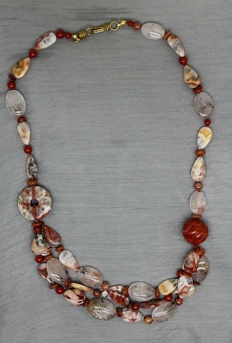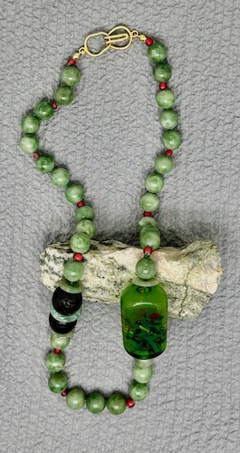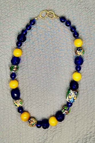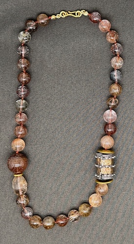 "Each of the pieces I have collected and incorporated into my own modern heirlooms has a network of people in its history and those people reveal themselves, in part, through their work. I share myself in the same spirit in each piece I create. My values, beliefs and humor; my sense of line, color, style and fantasy, are a part of all my work. I cherish the gifts they represent. During my travels this year, I discovered a glass bead maker in Murano, Italy that was encasing gold and silver leaf in his glass beads. The result was stunning and I brought some home to use in this year's collection. I hope you enjoy the pieces that incorporate these hand made beads - just another sample of the unlimited creative possibilities of the human race."